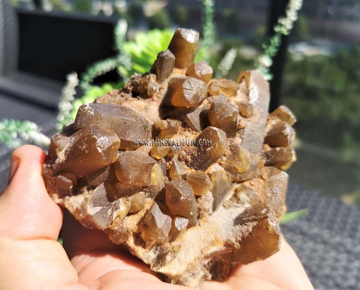 Conjunto de cristales prismáticos de Barita, bien perfilados, en tono amarillo miel, con brillo céreo. Se trata de un ejemplar de formación poco frecuente, lo que lo hace más interesante. Procedente de Sichuan (China).